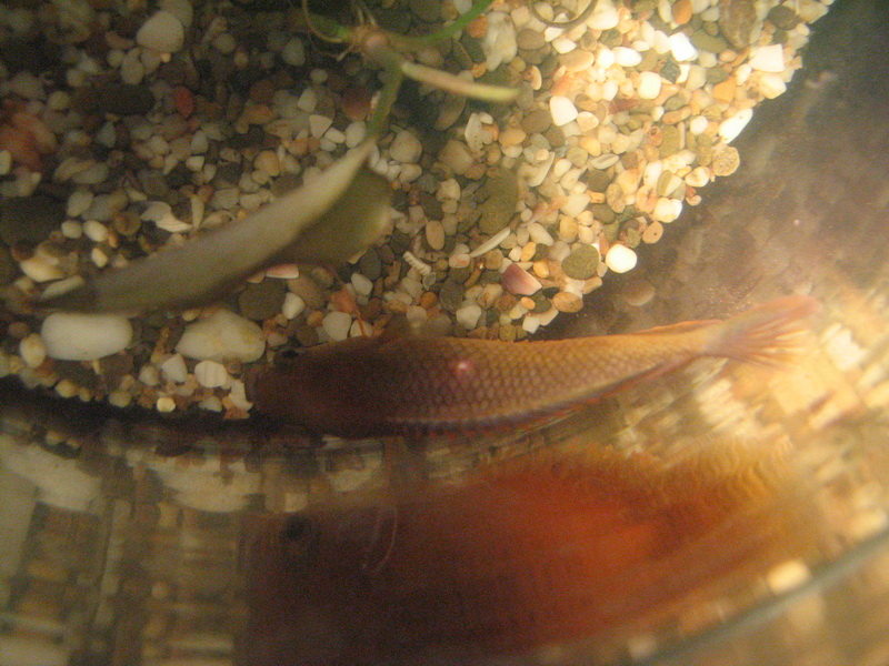 У медового Гурами что-то тёмное под кожей (красноватое), а у молли - что-то белое торчит из тела, как буд-то прыщик, чешуя немного вокруг взъерошенная.