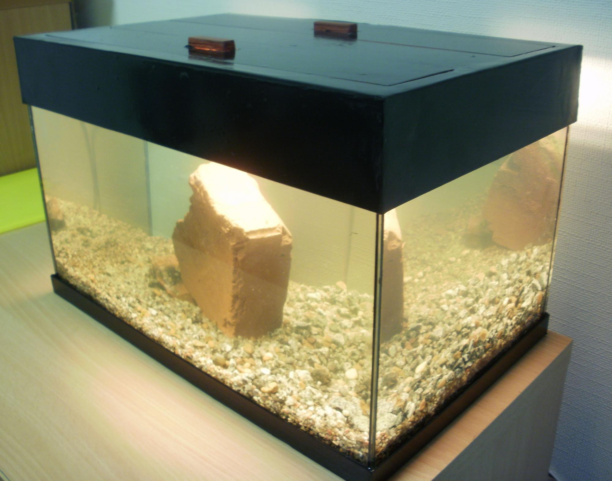 Я, дабы разбавить кабинет программеров, решился на запуск 20литрового аквариума. Аквариум был склеен еще пару месяцев назад, но лежал без дела... крышка к нему тоже была сделана, а вот поддон я решил добавить только недавно. Думая над дизайном, пришел к выводу что раз уж мы живем в век прогресса и урбанизации - то пусть будет кирпич. Тем более что кирпич красный, что в принципе может символизировать закаленность и готовность ко всяким катаклизмам )))