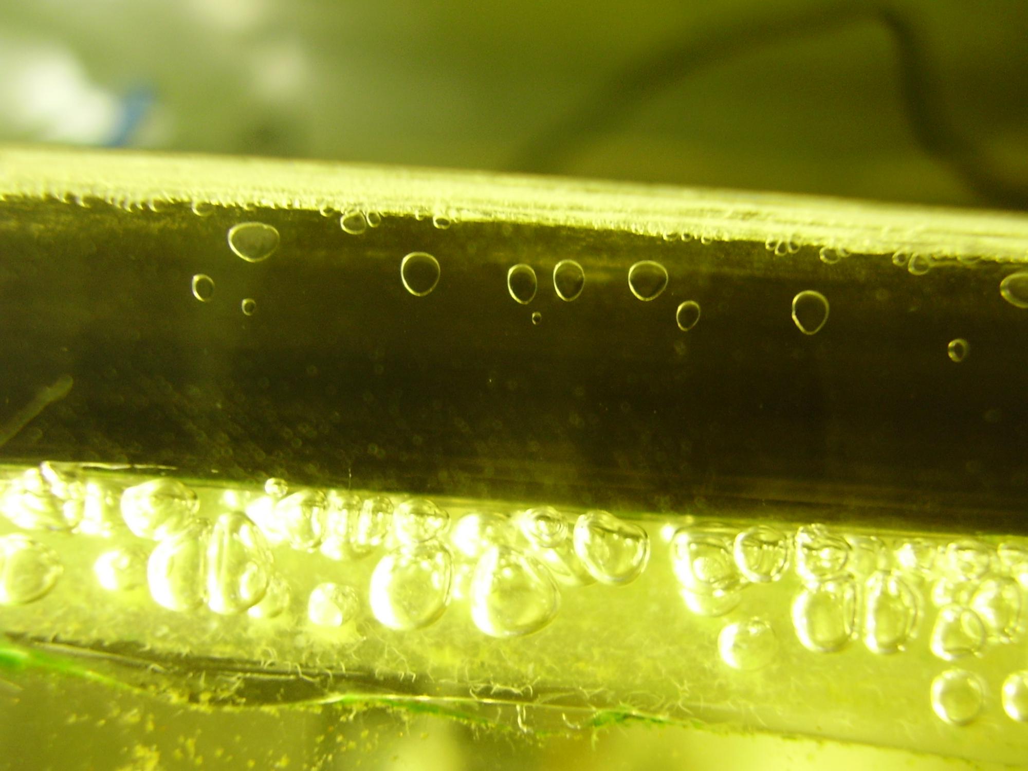 Пузырьки в проливке - следствие того, что залил угол полностью по толщине клеем. Насколько понял, чтоб этого не было при пользовании COSMOFEN PMMA, необходимо проливать тонкими слоями с последующей выдержкой не менее суток, а пузырьки - результат того, что внешний слой уже полимеризовался и внутри парам растворителя некуда выйти.
