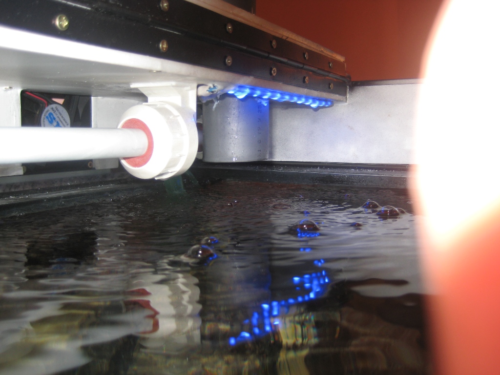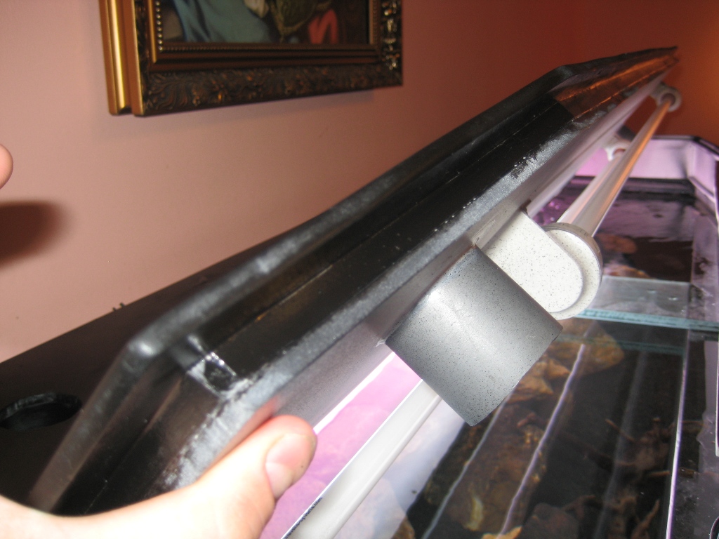 Для лучшей вентиляции сверху высверлил 4 отверствия, до каких приклеел сеперклеем трубу обычную канализационную (Plasti-fix только до ПВХ, иные материали не клеет) а все швы промазал клеем Plasti-fix, держит мертво. Трубу нарочно вывел ниже уровня ламп, таким образом на потолке нету солнечных зайчиков. Труб можно сколько угодно, это как фонтазия заиграет.