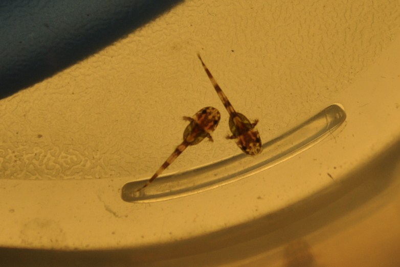 У меня нерестяттся в общем аквариуме, постоянно там живет " крупных самцаи 3-5 самок взрослых, есть 2 любимые трубки.Перерывы между нерестами бывают и полгода.ТО как они сами захотят.В этом году один нерест проморгал, увидели только почти месячных мальков.Ничего живут.А вот один из результатов нереста месячной давности и он уже идет в выростной аквариум.