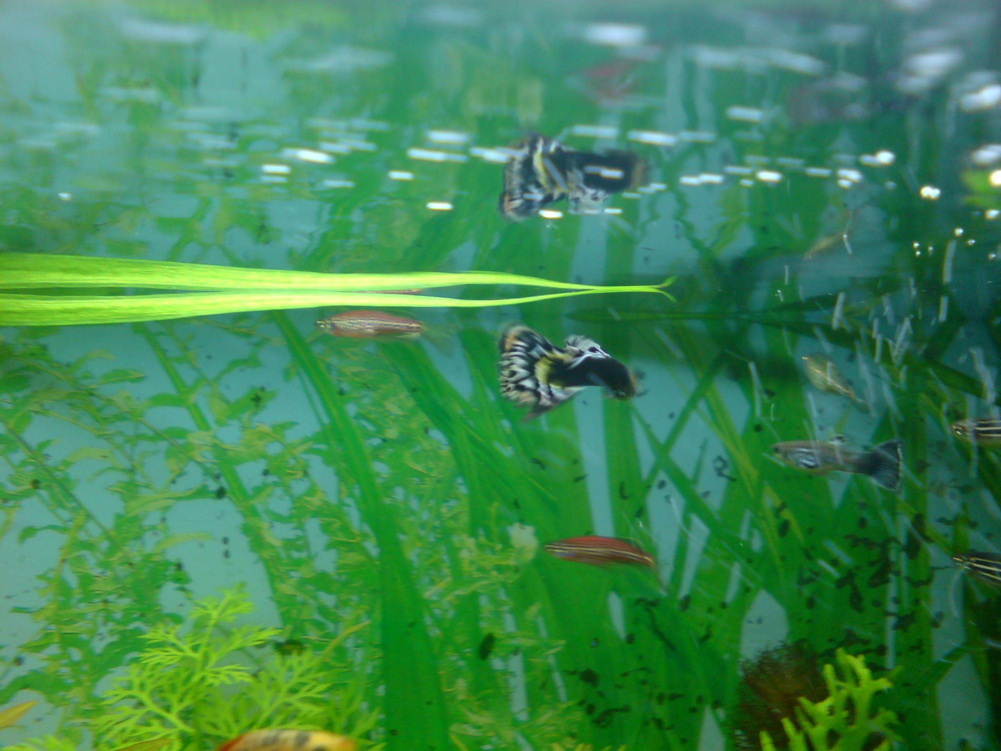 Также 3 взрослых самца гуппи и 1 самка (беременная)