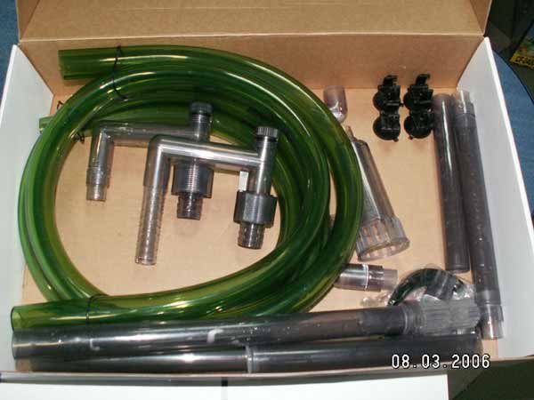Конечно перед тем как собирать аквариум было уже спланировано оборудование и т.д. Места под самп нет, под аквариумом уже стоит самп, но только на стойку для продажи рыбы. По началу было принято решение поставить 3 внутренних фильтра Атман АТ-883, но они заняли бы очень много места в аквариуме. Остановились на канистровом фильтре Атман CF-2400, по объёму эта 22 литровая канистра ни как не меньше 3-х АТ-883 и место для неё нашлось. Очень интересная модель, уже доработанная, с приятными мелочами.