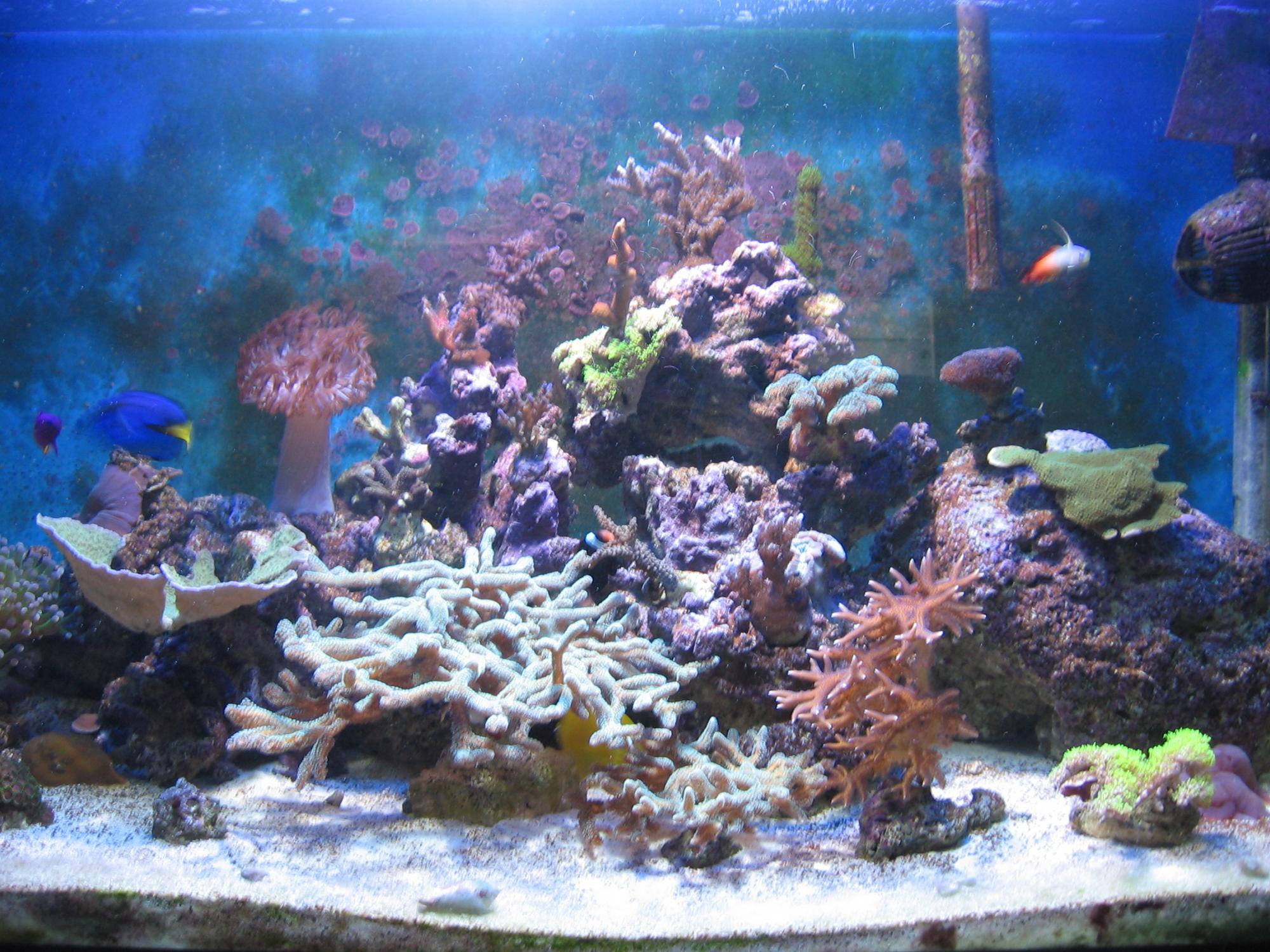 Добрый день, уважаемые форумчане. Столкнулся с такой проблемой: кто-то по ночам ест SPS кораллы. Не просто обьедает, а откусывает ветви. Подскажите кто бы это мог быть. Какие методы борьбы могут быть? За качество фото извините, фотик-мыльница. Из населения аквариума: зебросома жёлтая, хепатус, хелмон, пара клоунов меланопусов, грамма королевская, бычёк огненный, креветка боксёр.