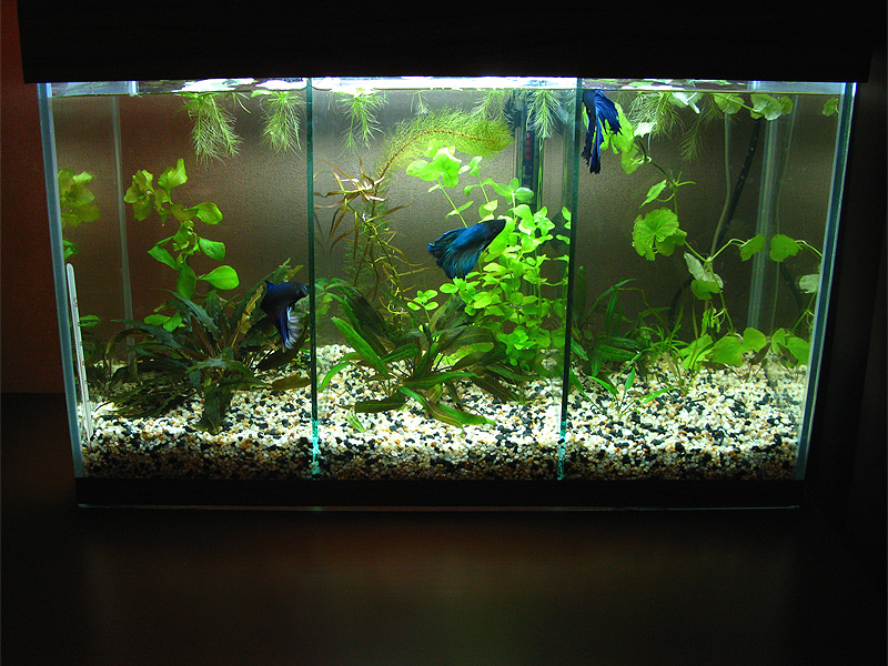 Продам аквариум, разделенный на 3 части - для содержания петушков. Также он подойдет и для любых других целей - перегородки съемные. Габариты 50х20х30в. Использовался 1,5 месяца. Есть незначительная царапина на боковой стенке, которая обнаружилась после приобретения. Пленка - коричневая (под "Ювель" орех). Крышка. Свет - 2х8W. Цена - 250грн. При желании продам и грунт, что на фото - смесь: светлый кварц + черный гладкий не знаю какой. Дарницкий р-н, ул.Драгоманова.