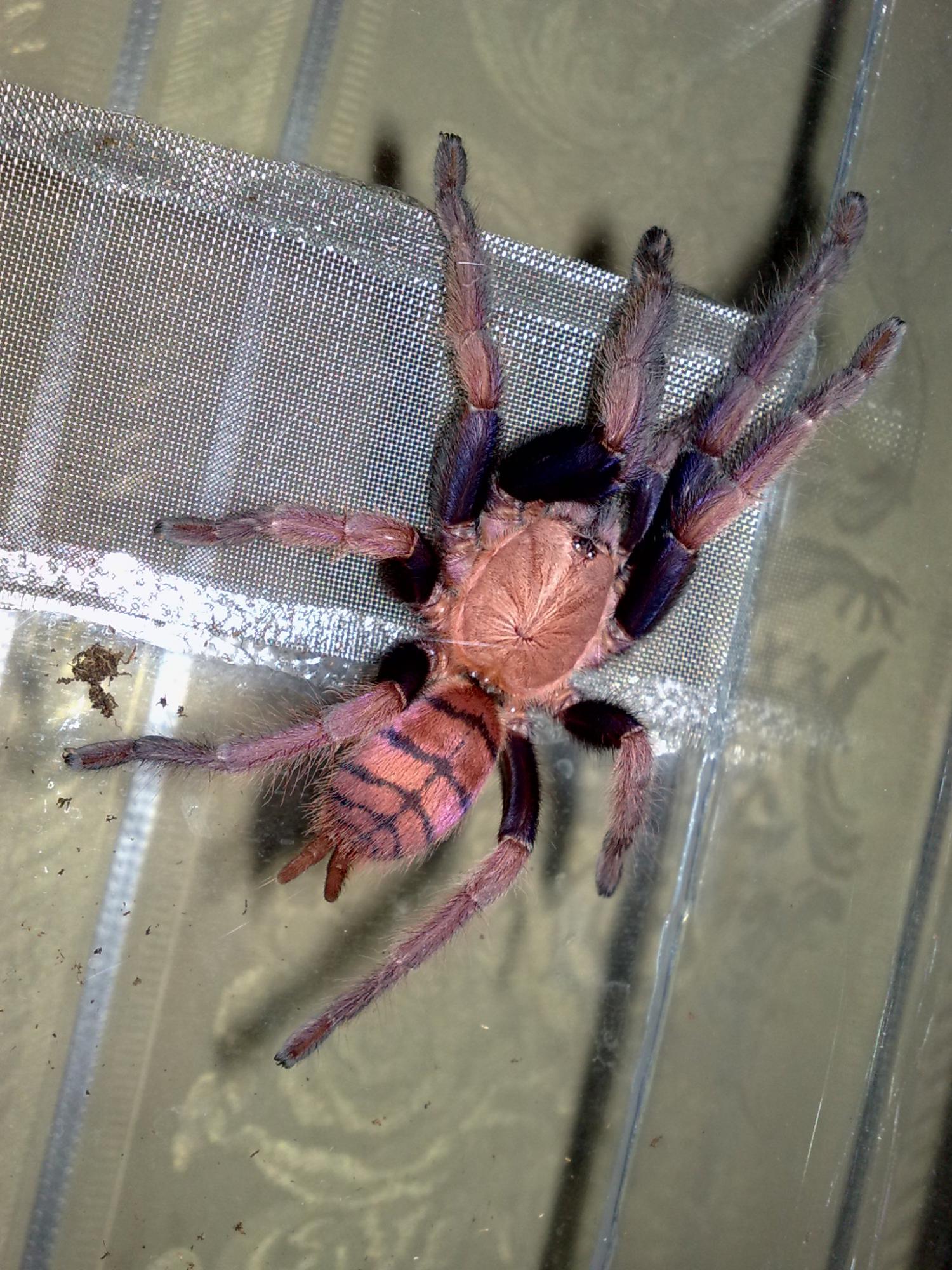 Новый в хобби сп-шный экземпляр , вроде обещают,что окрасится по адультности в синие цвета , хилик из Вьетнамских джунглей 3л ( Chilobrachys sp. Vietnam Blue) :