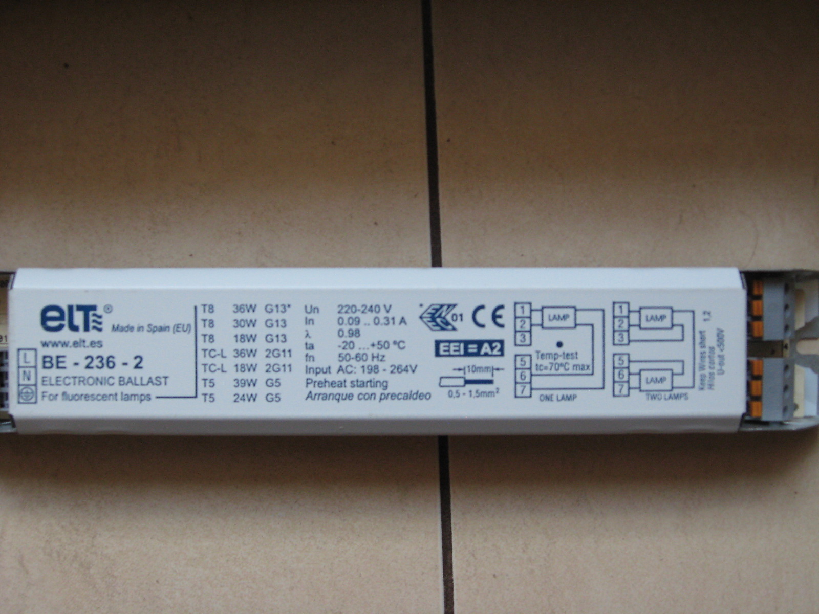 Подскажите пожалуйста, как правильно соединять провода с эпра ELT BE - 236-2