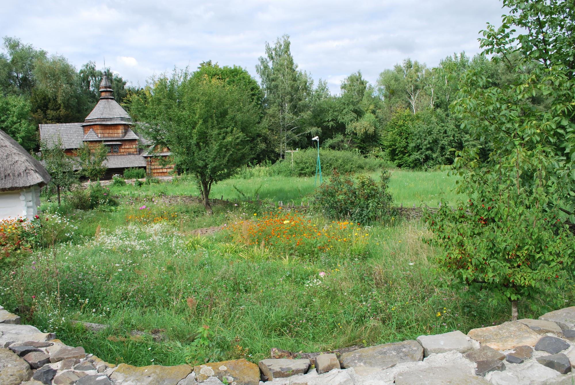 помимо все время действующей экспозиции народной архитектуры и быта нам повезло в одном из двориков Подолья наткнуться на мастера живописи. довольно пожилой человек в соломенном брыле слушал козацкий хор и рисовал новую картину. Он оказался очень приятным и я бы даже сказала лучезарным и добродушным старичком с сатирическим чувством юмора ( он так же является автором книжки сатирического юмора "Горохом по спині", в книжке очень много забавных карикатурок на русском языке)
