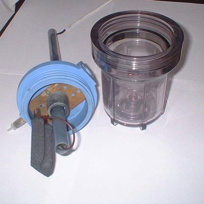При подаче напряжения (НЕ ПЕРЕПУТАЙТЕ ПОЛЯРНОСТЬ!) на электродах начинается процесс выделения газов. Выделившийся на стальном электроде водород свободно выходит по трубке в атмосферу, а выделившийся на графитовом электроде углекислый газ скапливается в верхней части емкости, постепенно вытесняя электролит в трубку. В какой-то момент времени давление столба электролита в трубке уравновешивает давление столба воды в аквариуме и сопротивление открывания обратного клапана и газ начинает поступать в аквариум.