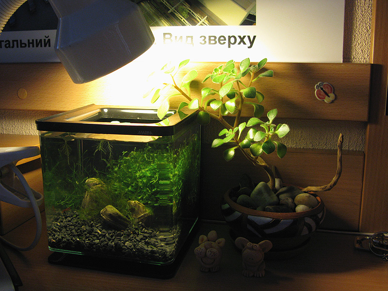 Ну и я тогда свой подводный мир покажу. Ну просто, чтоб было  . В общем, растительность бывает не только шикарной  . Аквариум этот, думаю, свое уже потихоньку доживает. Зрею на бОльший объем с нормальными лампами и более серьезным подходом к оформлению.