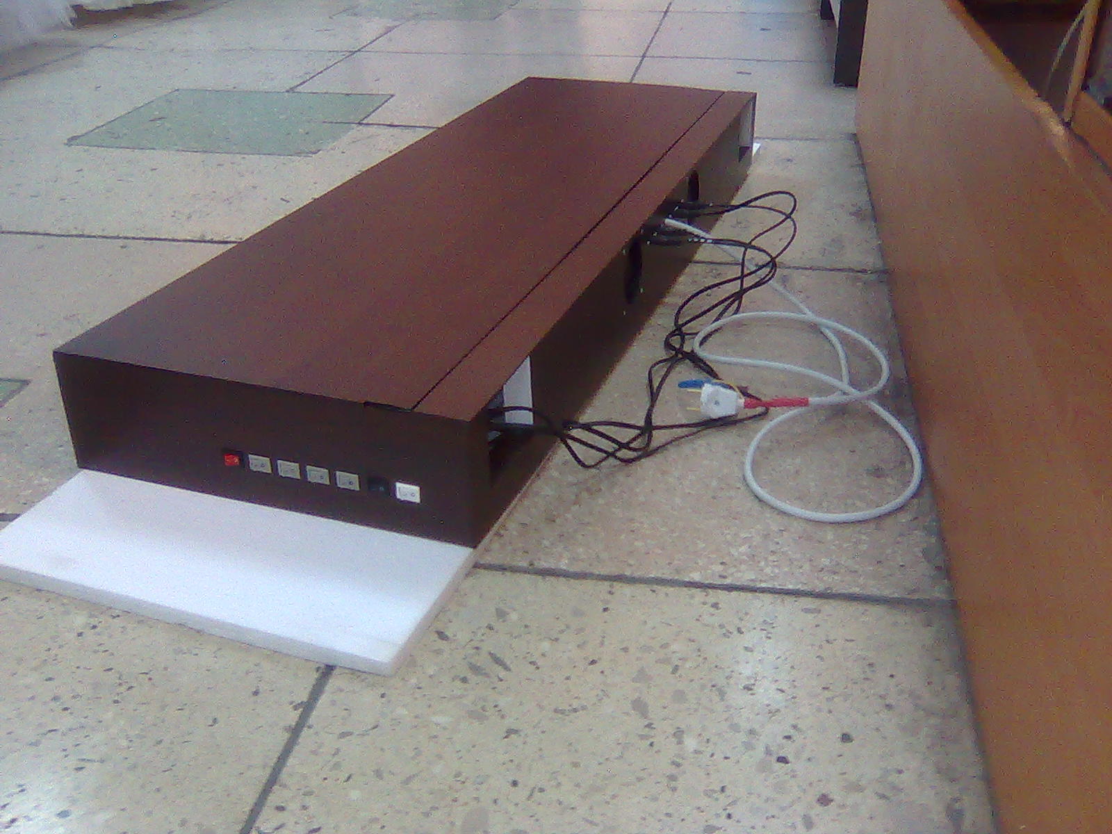 Lugansk. Предлагаю для Вас следующую конструкцию крышки (не открытые светильники, и даже не навесной, потому-что за шторкой должно быть темно): поднимающийся верх, но не весь, а только на 2/3; от бытовых светильников под крышкой (увы!) придется отказаться (самый верхний в нише пусть остается на месте, он осветит и полку, и всю нишу для работы, а вкл. для него есть отдельный) и применить гермопатроны; если интересует вентиляция, то куллеры нужно встраивать в верхнюю плоскость крышки ближе к задней стенке.