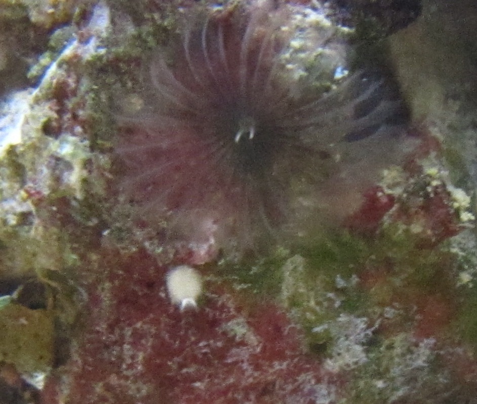 Ну и пытался сфотографировать крабика, но чет не очень получилось. Я думаю что это фильтратор. Сидит и размахивает чем-то похожим на антенки