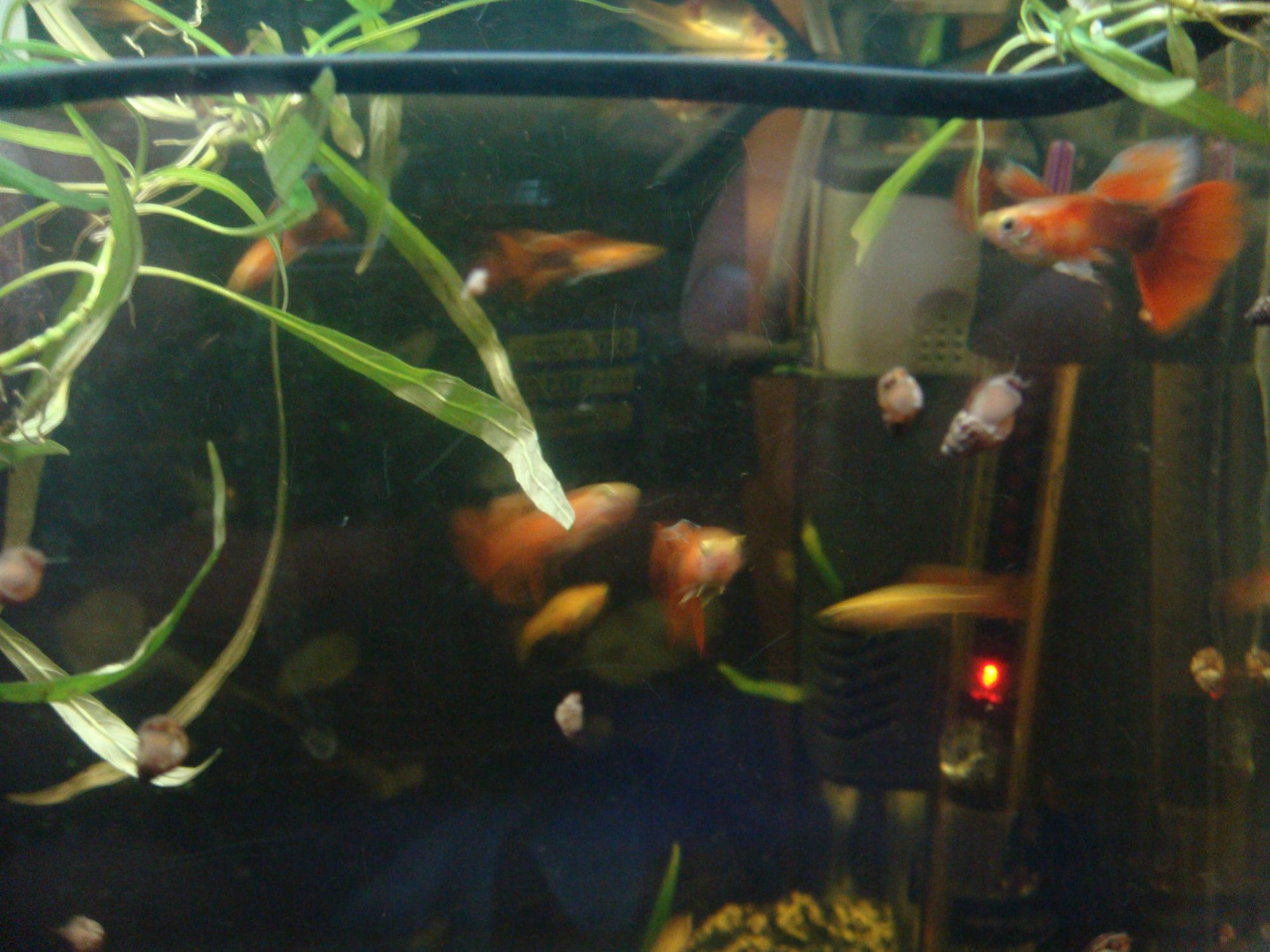 есть гуппи красные,подростки 2-3см.5гр шт.извиняюсь за качество фото.хвостики и верхние плавнички будут больше,раза в 1,5