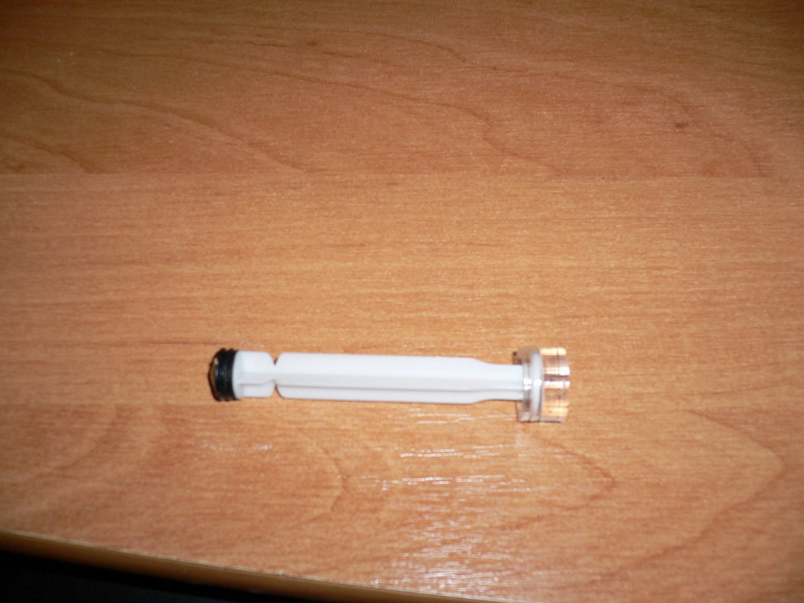 Крепление шприца к стержню толкателя лучше заказать токарю ( размеры на рижском форуме). Если токаря нет, то деталь сложно - но можно сделать в домашних условиях из оргстекла с помощью дрели.