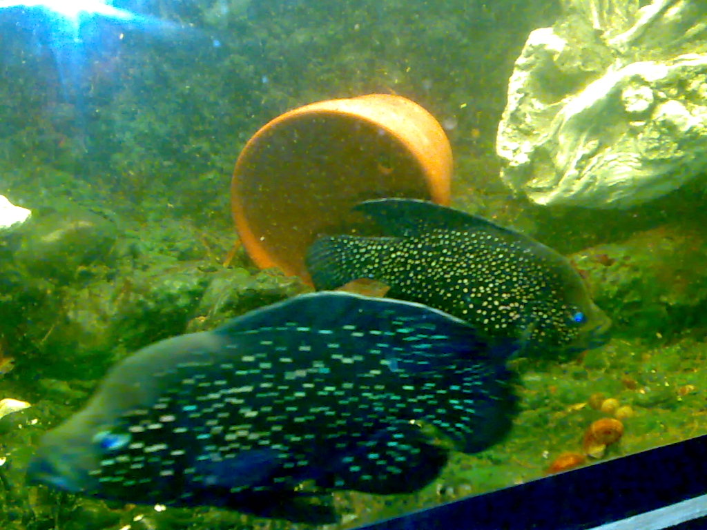 вот только сделал фото.пара?и спокойно живут уже 2 месяца с перевертышами,анцитрусами,и этими что на фото цихлидами.аж обидно что никого не сьели