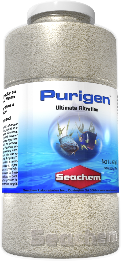 Seachem PURIGEN – является высококачественным адсорбентом отличным от остальных продуктов применяемых в системе фильтрации. Purigen макро-пористый синтетический материал адсорбирующий органические остатки с нитратными, нитритными и аминогруппами в их составе. Адсорбирующая способность Purigen превосходит другие адсорбенты ( такие как угольные и др.) на 500%. При использовании Purigen в системе фильтрации значительно повышается окислительно-восстановительный потенциал (Redox потенциал) и значительно осветляется вода.