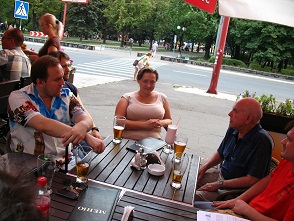 предлагаю кафе гермес (кажется так называется)! не пивбар - можно вкусно покушать и не дорого, корошо посидеть пообщаться...