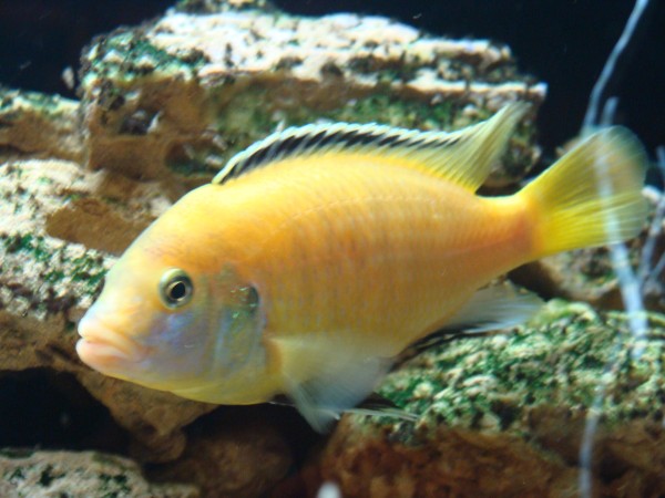 Это хорошо откормленный Labidochromis caeruleus 'yellow'  Скорее всего не очень чистая линия. Просматриваются признаки характерные для зебр (METRIACLIMA / MAYLANDIA).