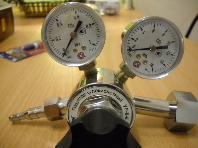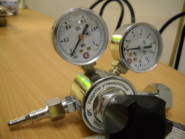 Предназначен для понижения и регулирования давления углекислого газа, поступающего из баллона, и автоматического поддержания постоянным заданного рабочего давления газа при сатурации пищевых продуктов.