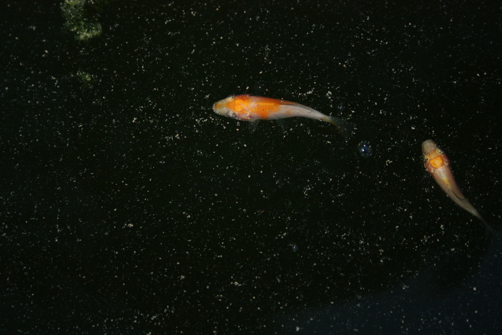 Вчера обловили бассейн и пересортировали мальков кохаку. Оказывается, вместе с гиацинтами в бассейн занесли икру комет и отсортировали много золотушек.