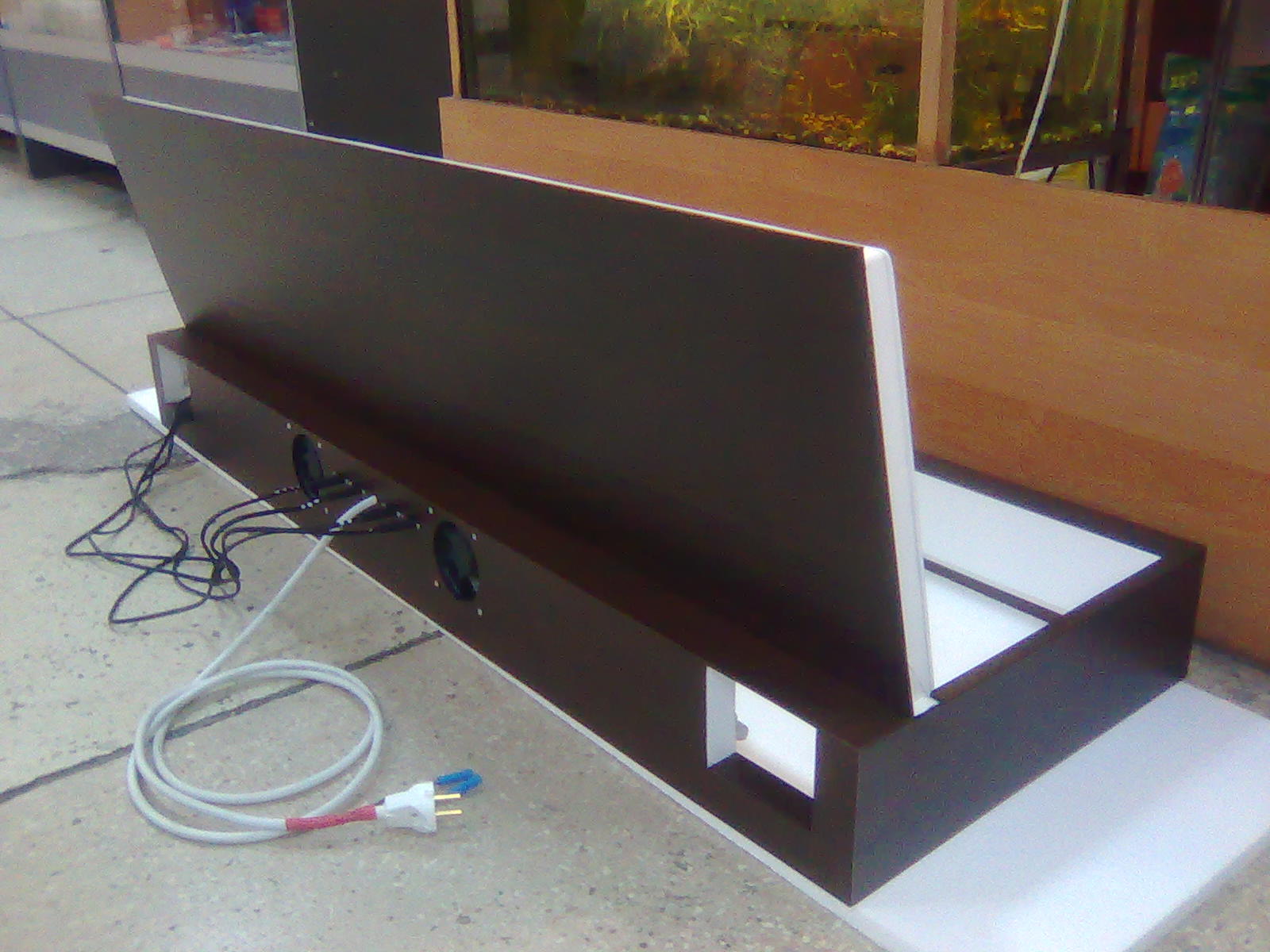 Lugansk. Предлагаю для Вас следующую конструкцию крышки (не открытые светильники, и даже не навесной, потому-что за шторкой должно быть темно): поднимающийся верх, но не весь, а только на 2/3; от бытовых светильников под крышкой (увы!) придется отказаться (самый верхний в нише пусть остается на месте, он осветит и полку, и всю нишу для работы, а вкл. для него есть отдельный) и применить гермопатроны; если интересует вентиляция, то куллеры нужно встраивать в верхнюю плоскость крышки ближе к задней стенке.
