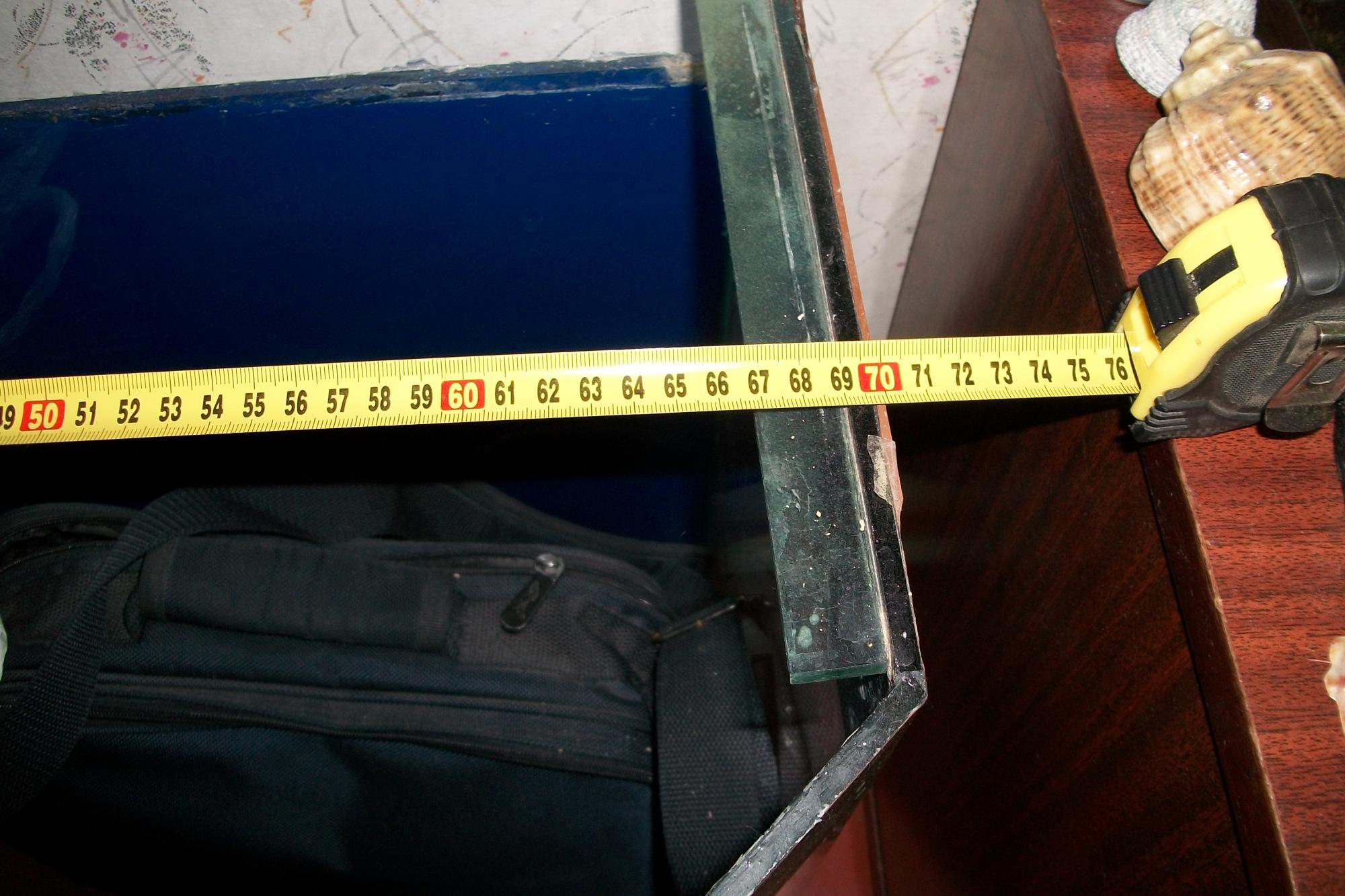 Аквариум 32 ширина, 78 длинна,высота с крышкой 55.Крышка с 2 лампами Т8, от аквариума Ювель. Покупался как 140 литровый, но судя по расчетам в нем 125 л. Из оборудования обогреватель.