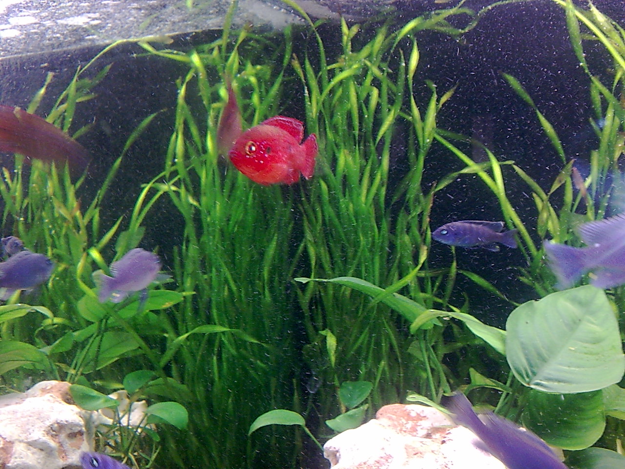 Посмотрите на фото с Еллоу всё ли впорядке? Что то он прячется постоянно, я обратил внимание что под ртом какойто бугорок. все рыбы кроме его подплывают на кормёжку . он вроде не мелкий как все Еллоу