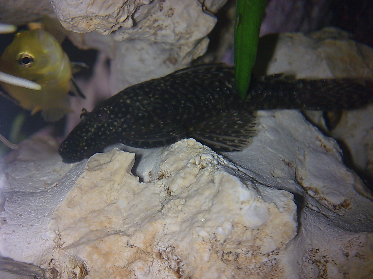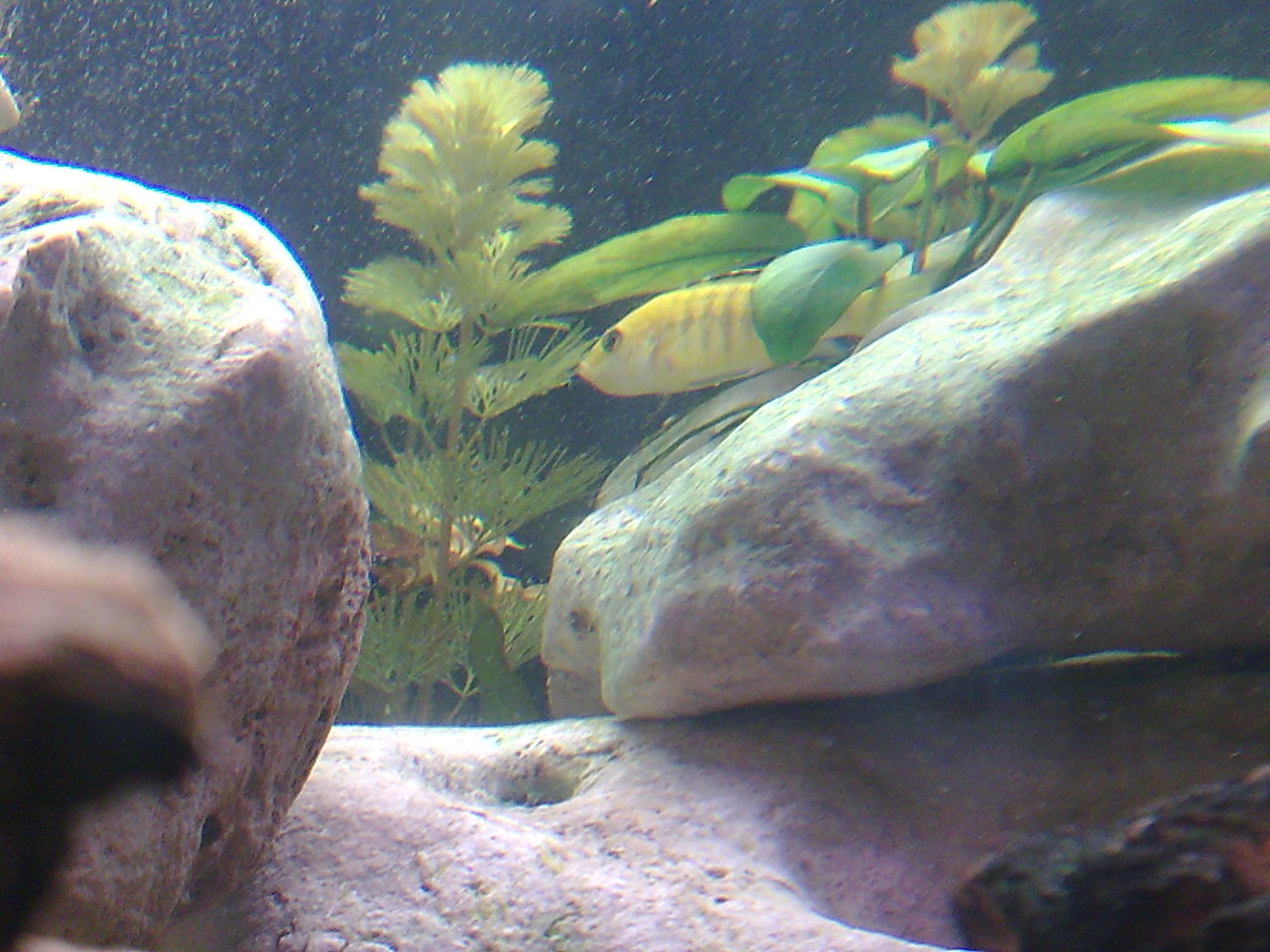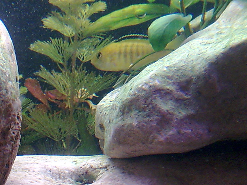 Посмотрите на фото с Еллоу всё ли впорядке? Что то он прячется постоянно, я обратил внимание что под ртом какойто бугорок. все рыбы кроме его подплывают на кормёжку . он вроде не мелкий как все Еллоу