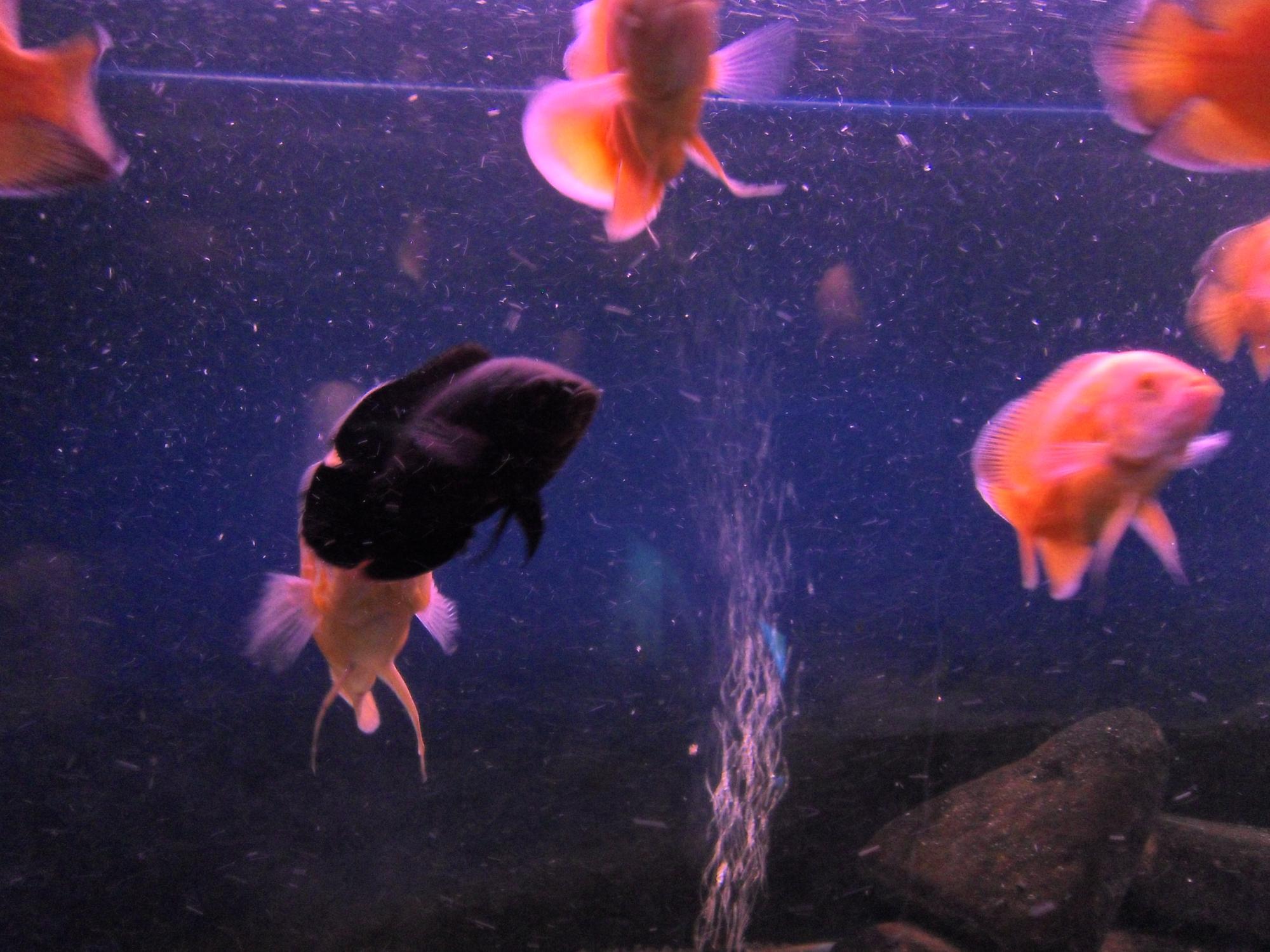 Всем известно что Астронотус пугливая рыба,  все хозяйва сталкиваются с такой же проблемой.  Рыба пугается, несётся сломя голову,  вылетает из аквы, бъётся о стенки о декорации( особенно ночью), вследствии получает травмы, увечья  или погибает на полу.  Имея опыт содержания этой замечательной рыбы, ВСЕМ  советую установить ночную подсветку типа "Луна"! Рыба видя что опасности нет или куда ей спрятаться, перестанет тревожить хозяина ночью звоном покровного стекла! И т.д.  С подсветкой могу помочь советом или съделать.