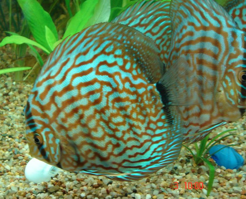 Лена большое спасибо за дискусов, две недели назад приехал посмотреть и купить, понравилось ещё на момент просмотра фоток на форуме, когда увидел вживую вообще супер, отобрал 4 шт и оплатил с условием что запущу аквариум и через недельки две заберу, сегодня приехал забирать и добавил ещё двух, хотя хотел не больше четырёх ( на 350 л хочу не более десяти штук и разного окраса) но не смог удержаться и взял 6 туркисов уж очень хороши. Всем рекомендую, рыба очень яркая и класная. Думаю завтра выложу фотки. Что ещё понравилось, что очень нормальные люди, всё расказали ,показали.
