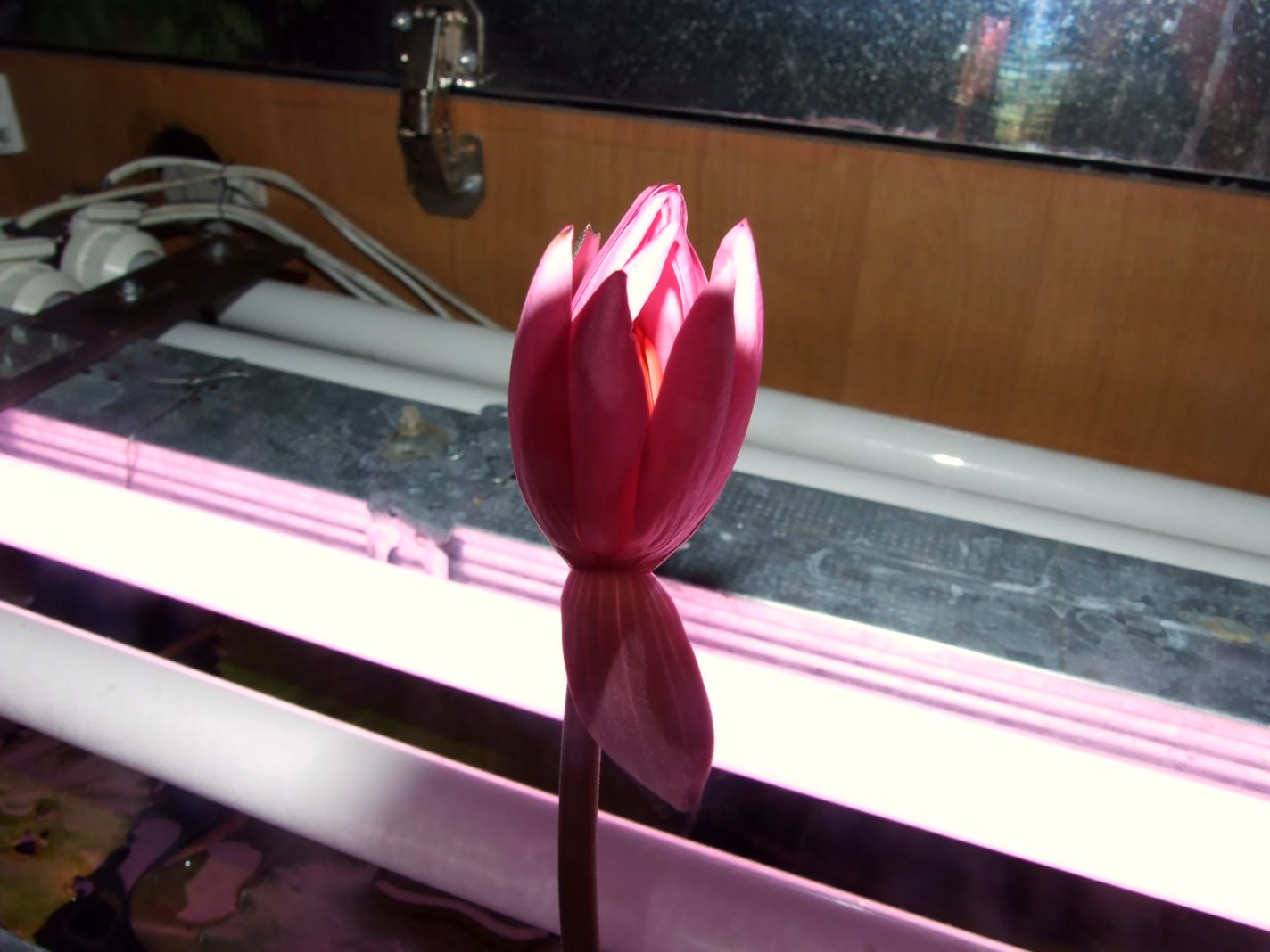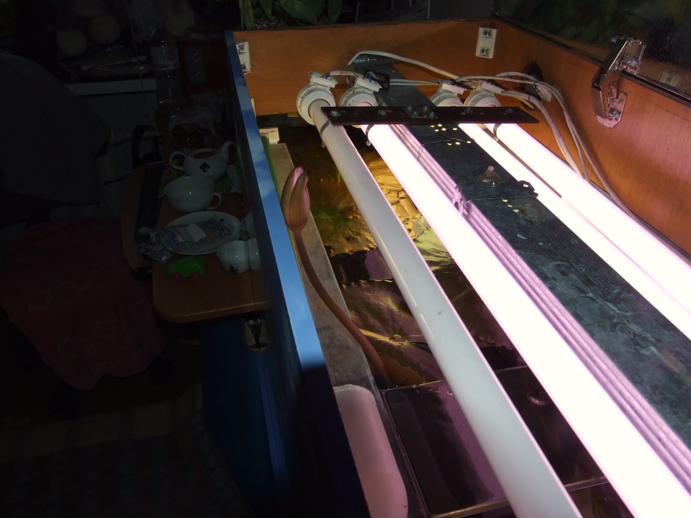 Убрал прожектор и повесл 2 лампы. Нимфеи листы подняли, но на высоту около 7-8 сантиметров. Выше не идут. Хотя пестрая и красная кинули уже по отводку.
