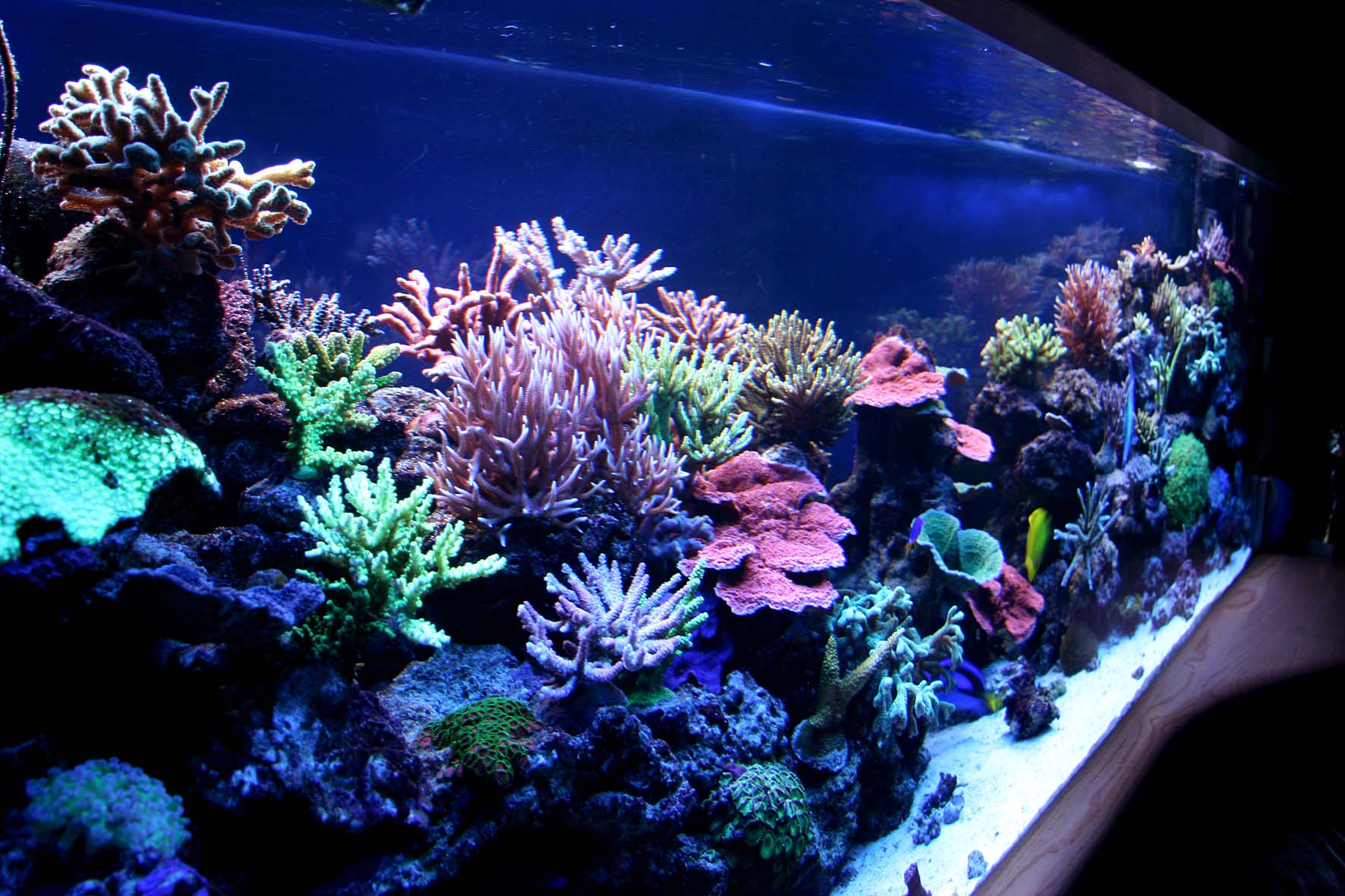 Прошло три месяца . Начал использовать химию Fauna Marine . Результат Циано . Перестал использовать . Испугался. Начал лить KZ. Через месяц таже ситуация, но в этот раз решил идти до конца. Через 2 месяца циано пропало, видимо аквасу нужно привыкнуть к вливанию какой-либо химии.Поставил аквакомпьютер Аквастудии AD-905