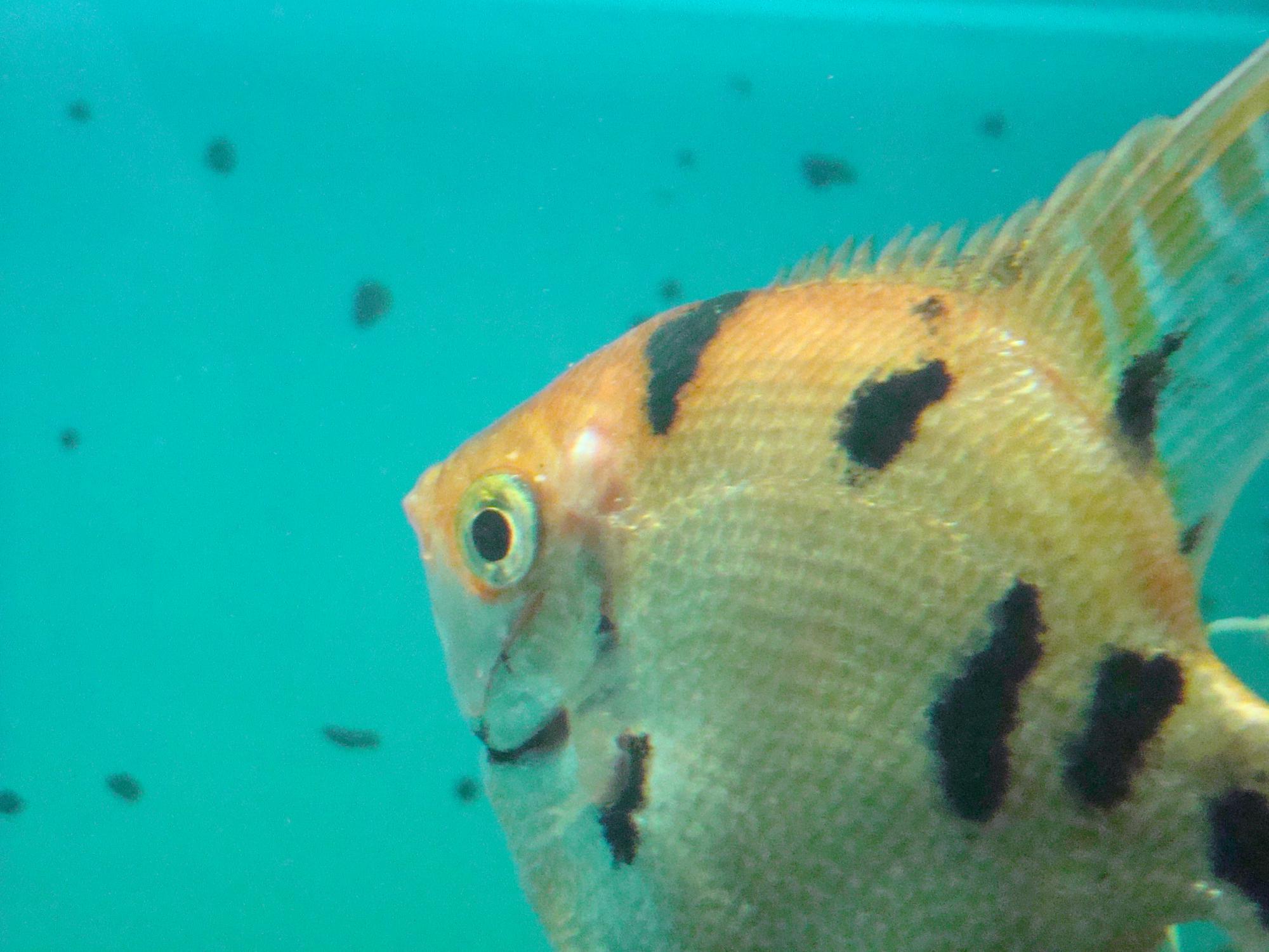 Пролечила рыб в общем аквариуме, вроде как стало лучше, но вчера заметила на этой же скалярии несколько белых точек вокруг глаз. Рана которая была - затянулась.