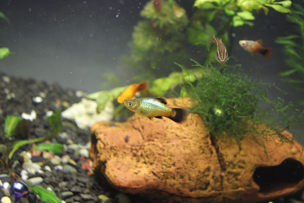 подскажите плз, недавно взяла пецилию, фото пока нет, рыба пока в кустах сидит, только нос снаружи.