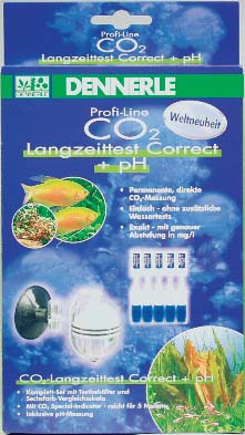 Комплект для полнения Dennerle CO2 Langzeittest Correct. Содержит 5 ампул специальной индикатороной жидкости pH по 1,3 мл., а также шестицветную сравнительную шкалу. Хватает на 6 месяцев.