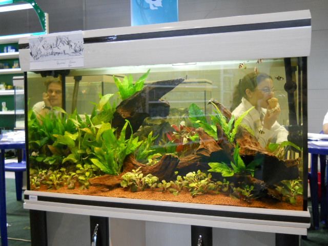 Как обычно, компания Унитекс проводила конкурс аквариумного дизайна. Только в этом году была избрана довольно интересная концепция этого конкурса. Аквариумы оформляли дети 12-13 лет - члены кружка аквариумистики местного Дврца пионеров или как он там теперь называется. В помощь каждому ребенку щедрые организаторы выдали по брендовому дизайнеру из первой сотни Амановского конкурса разных лет. Россиян для этого мероприятия очевидно не хватило и были приглашены наши специалисты: Гриша Полищук, Сережа Светличный и Илларион Макарихин.
