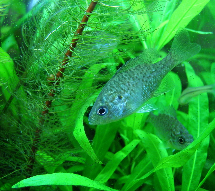 вчера поймал в Ингуле интересных рыбок, поймал в водорослях 4 малечка, к сожалению адаптировался только один, интерсены версии, что за рыбка? Первая версия о какой подумал- что это солнечный окунь.