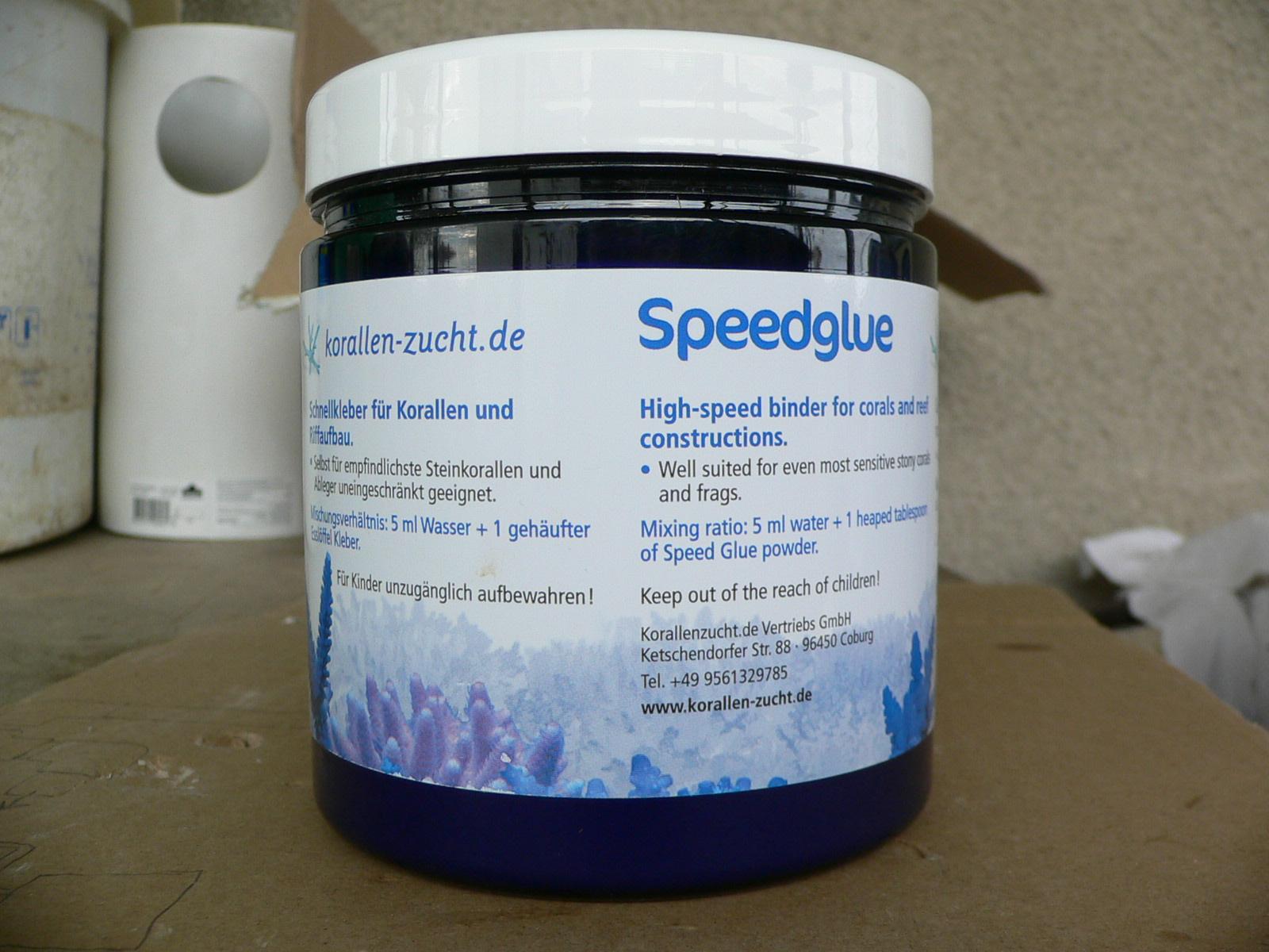 Из Primo Reef Rock я без особого труда за полчаса сложил интересную мне композицию. Скреплял камни Speedglue от Korallen-zucht — однокомпонентным серым порошком. На воздухе при +10 полное затвердевание через 24 часа; шов после высыхания белёсый. Чем больше площадь контакта — тем крепче соединение.