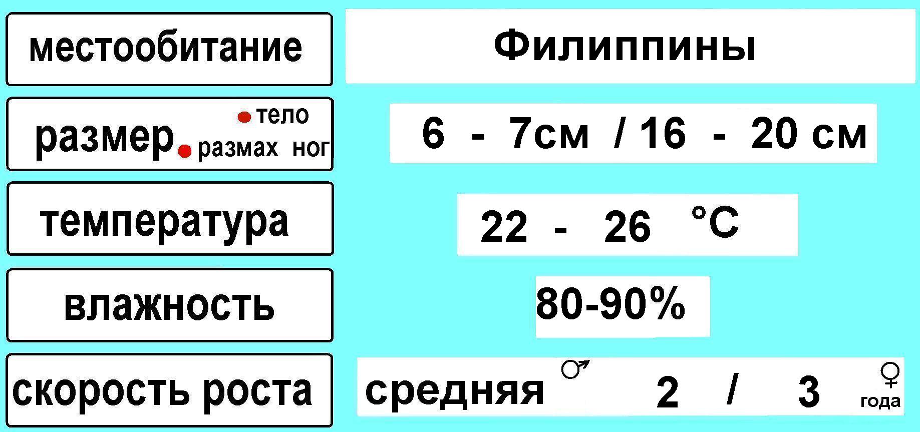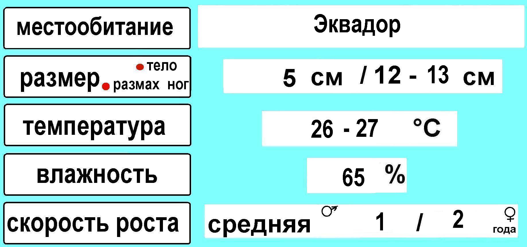 Параметры содержания отдельных видов птицеедов.