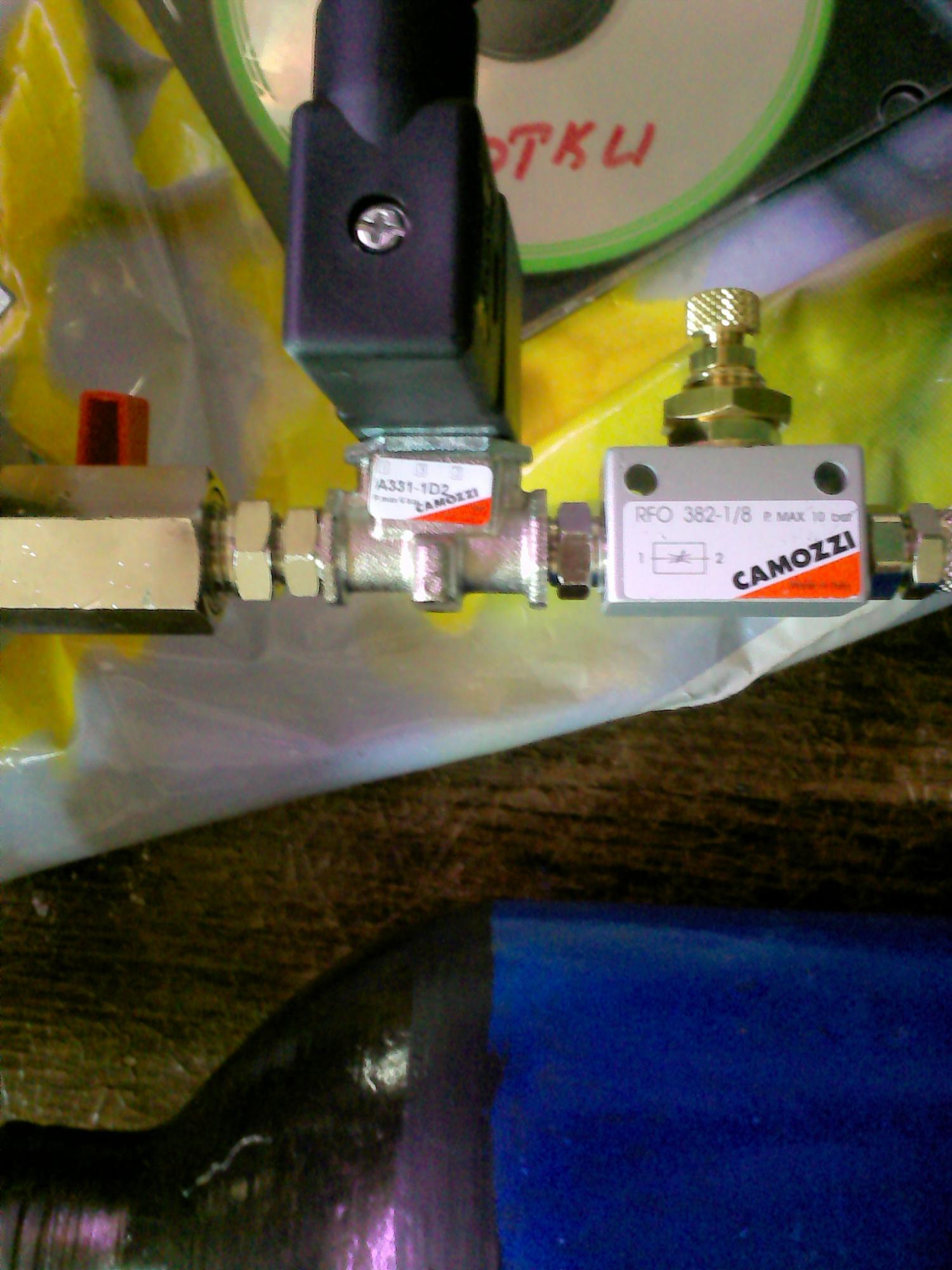 Долгое время я просто булькал СО2 напуская в колокол газ вручную - это немного напрягало - да и стабильностью такой способ не радует потому было решено купить арматуру Camozzi. Выбор Camozzi обусловлен тем это решение отличается от других(более дешовых) надежностью. Заехав в представительсто Camozzi быстренько оформил зеказ - за что большой респект ихнему менеджеру - он быстро и професионально подобрал нужные мне компоненты. При получении заказа (доставка заняла 3 дня) мне все расказали и показали как собрать. Собственно сборка дома заняла чуть больше 5 минут. Катушку для электроклапана я брал на 12 вольт - можно было взять и на 220 вольт сэкономив на блоке питания но как обяснили в Camozzi у катушки на 220 меньший ресурс и она сильнее греется.