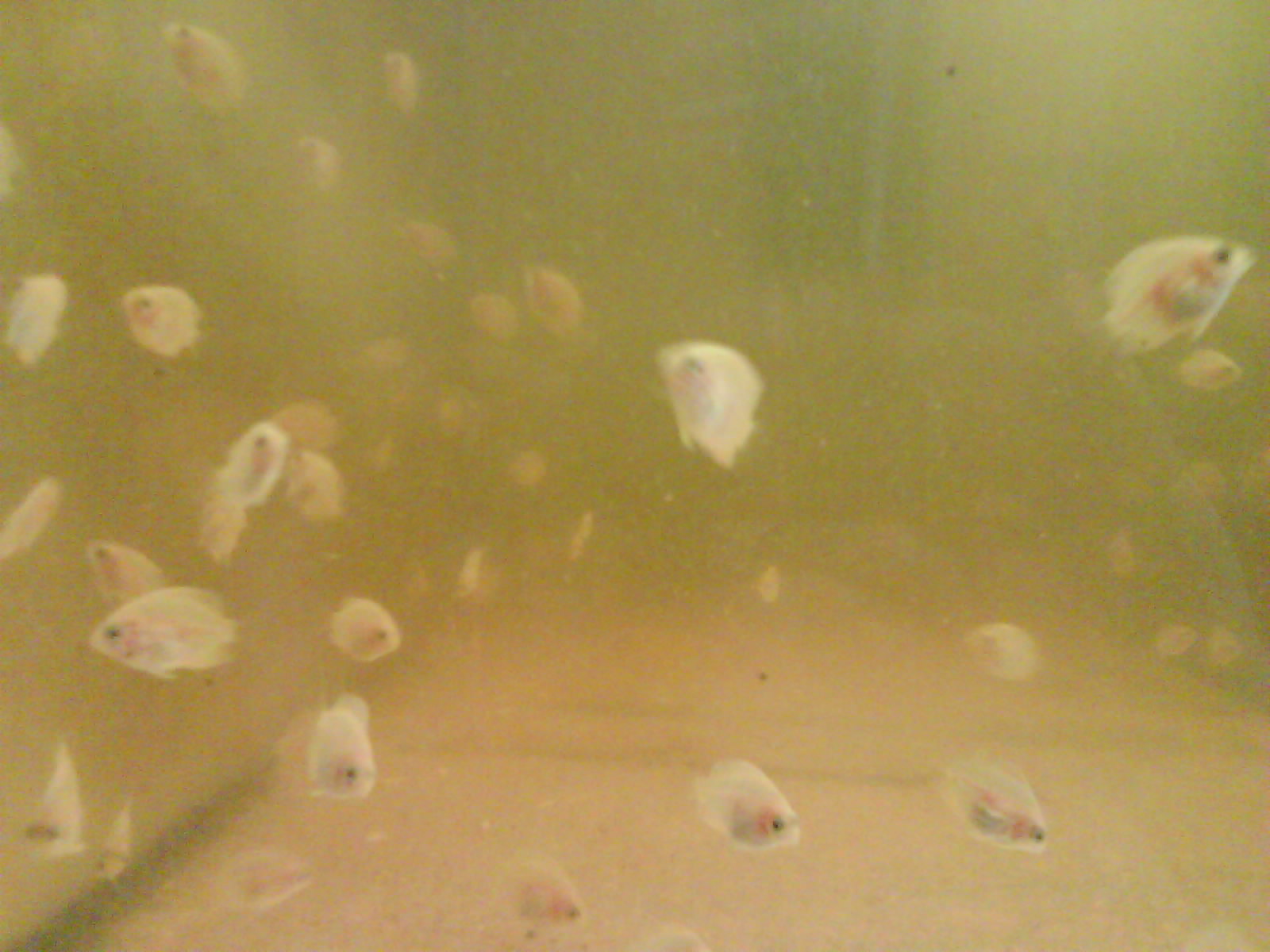 Продам подростков северумов золотых в количестве 100 шт. Размер рыбы от 3.5 до 4 см в теле. Возраст 6 мес, всё из одного потомства. Малёк свой. Цена 15 грн.шт. Также есть малёк 2 см по 5 грн, около 70 шт. Если надо, могу прислать фото производителей. Нахожусь в Новомосковске. Отправка в другие города из Днепропетровска. Подростки на фотографиях. тел 0660916236 - Дмитрий. Кто захочет приобрести - лучше звонить, инет не всегда работает((