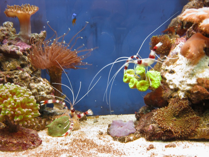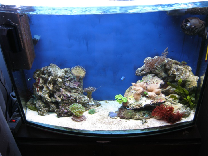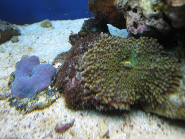 По заселению: к уже имеющимся клоунам и ракам были заселены хризептера желтохвостая, стромбус, 2 креветики боксер(самец+самка), офиура, собачка биколор.