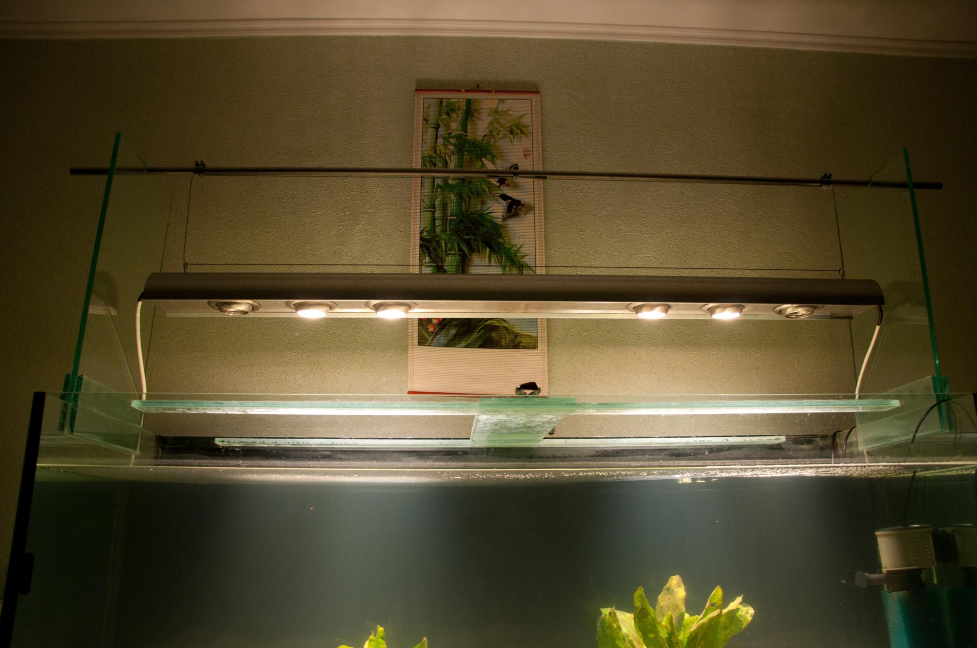 Возможно использование и 50Вт лампочек, но откровенно говоря с ними свет тускловатый на 60см высоты аквариума.