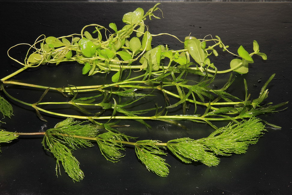 После прополки есть: лимнобиум побегоносный, пистия, ряска, роголистник, бакопа каролинская, наяс. (могу ошибаться в названиях  но на вид похожи)