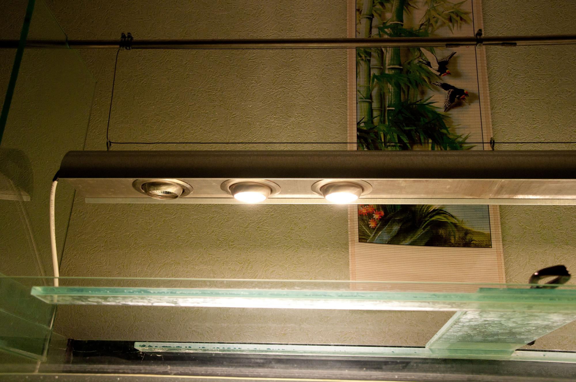 Возможно использование и 50Вт лампочек, но откровенно говоря с ними свет тускловатый на 60см высоты аквариума.
