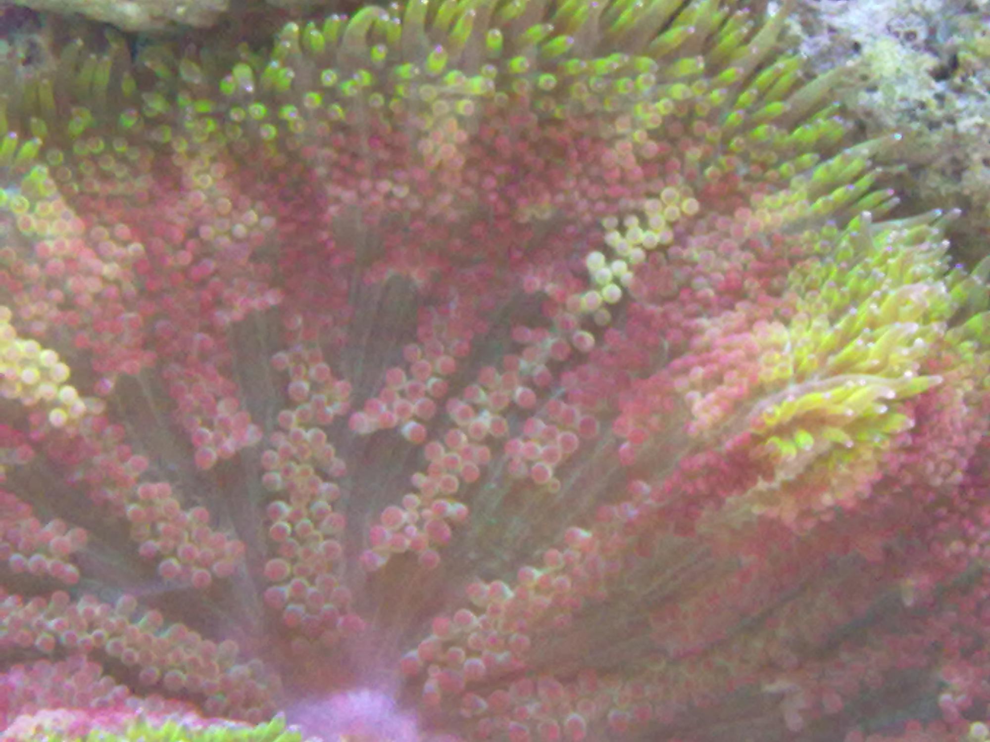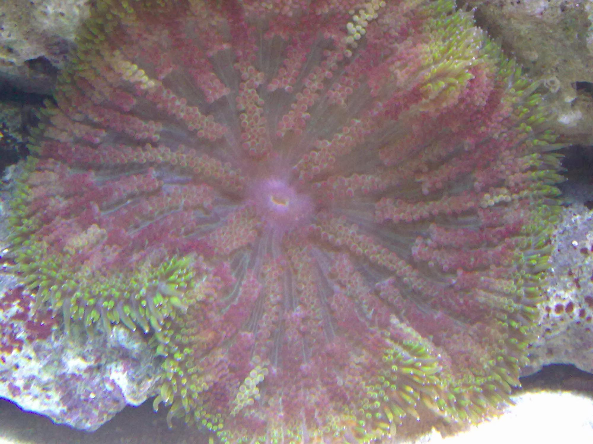 А вообще - ленивый коралл, трахифилия. Надувается регулярно сама, а вот щупальца - только после закладки порции креветки в ее две ротяки!
