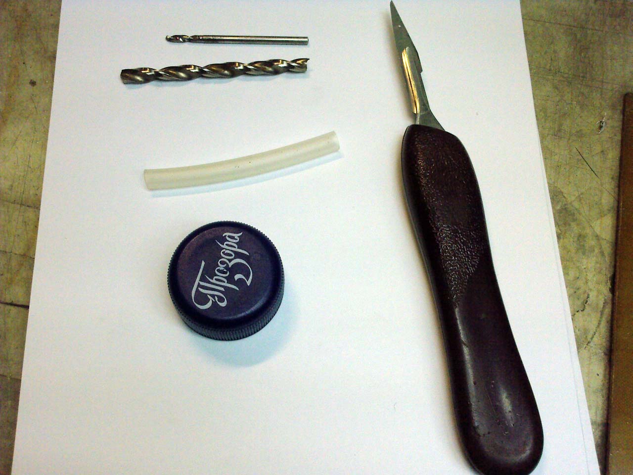 • Две жестких пластиковых трубки (те которые идут до дна бутылок)