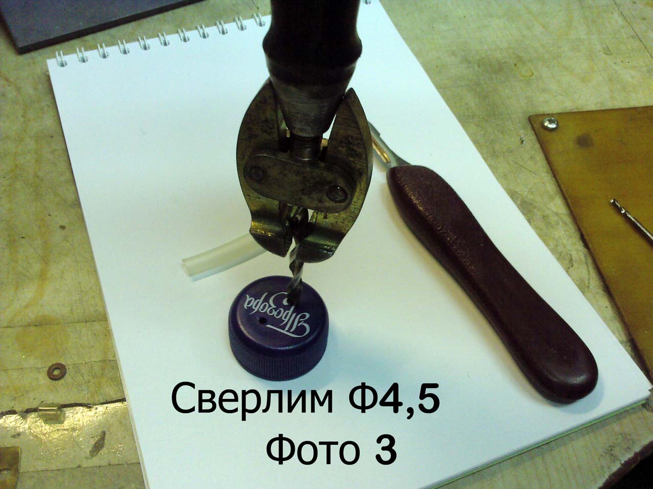 BelkinS, только я использовал широкие крышки из под сока "Биола" но... Со временем такое соединение начинало травить, возможно из-за "усталости" крышки/шланга от высокого давления... На мой взгляд, самый оптимальный способ герметизации, это с помощью одетого на шланг кусочка силиконовой трубочки, если силиконовую трубочку сложно найти, можно использовать катетер, продается в любой аптеке. И... отверстие в крышке желательно не просверливать, а проплавлять. Берем сверло подходящего диаметра, я использую сверло диаметром 5 мм, нагреваем его на газовой горелке, затем аккуратно прожигаем отверстие в крышке, после чего резко опускаем в холодную воду нашу конструкцию из крышки и сверла, вытягиваем сверло, получаем очень аккуратное отверстие с небольшим бортиком, который работает, как ребро жесткости. Почему этот способ лучше, чем сверление отверстия? Потому, что просверлить идеально круглое отверстие очень сложно, даже если пользоваться остро заточенным сверлом на высокой скорости. И если отверстие не круглое, в "уголках" возникают концентраторы напряжения, по которым крышка дает трещину.