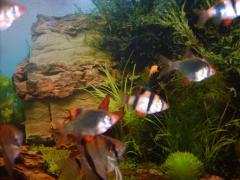 таблеток вчера накидал,вода желтая,за ночь никто не сдох,только на эхинодорусе листья немного обвисли.заметил еще на суматранце одном хвост как бы вниз отогнут и не расправляет хвостовой плавник.это что за напасть?он по центру фото