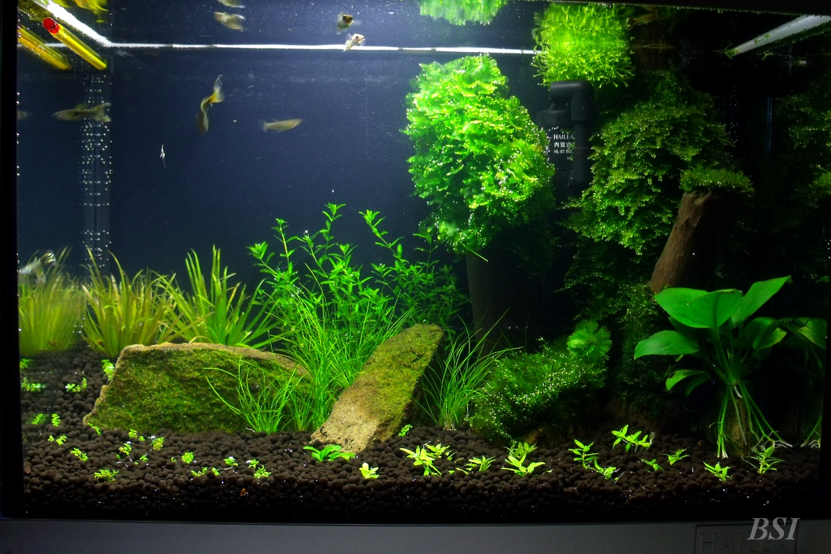 Все остальные растения с превеликим удовольствием закрепились на предложенных местах. Корни в пинцете заходили в грунт как в масло После посадки доливаем воду.... И сразу же туда были закинуты гупаки и три черика - старожилы... Если даже и неправильно, то уже ничего не поделаешь